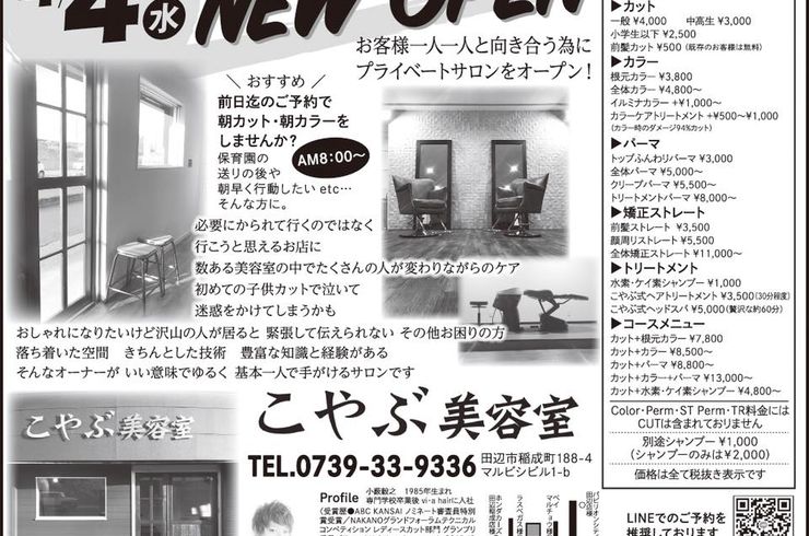 名前は『こやぶ美容室』で4月7日にオープンしま